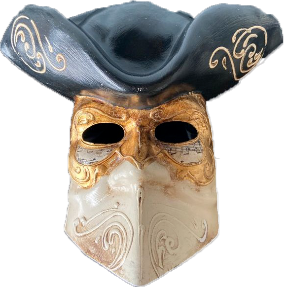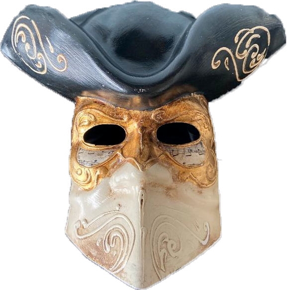 Par son aspect graphique et mystérieux, le masque de MÉDECIN DE LA PESTE conçu par les artisans masquiers du XXe siècle, est devenu un best-seller immédiat pour les touristes et les photographes du Carnaval de Venise. Il s’inspire du masque de protection utilisé par les médecins au XVIIe siècle.