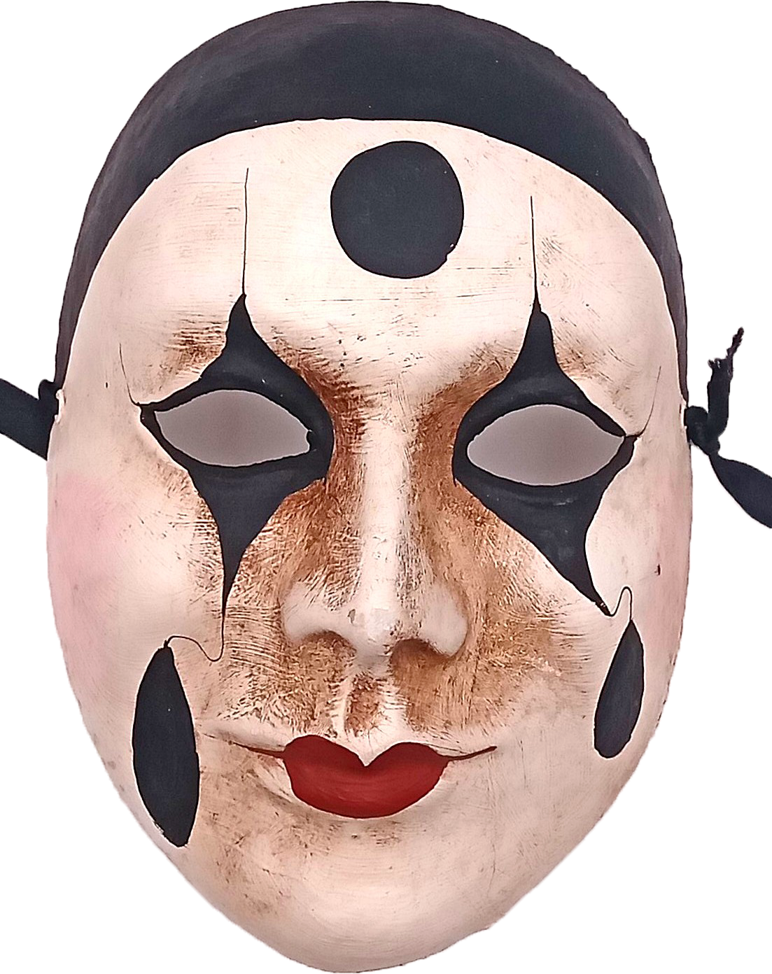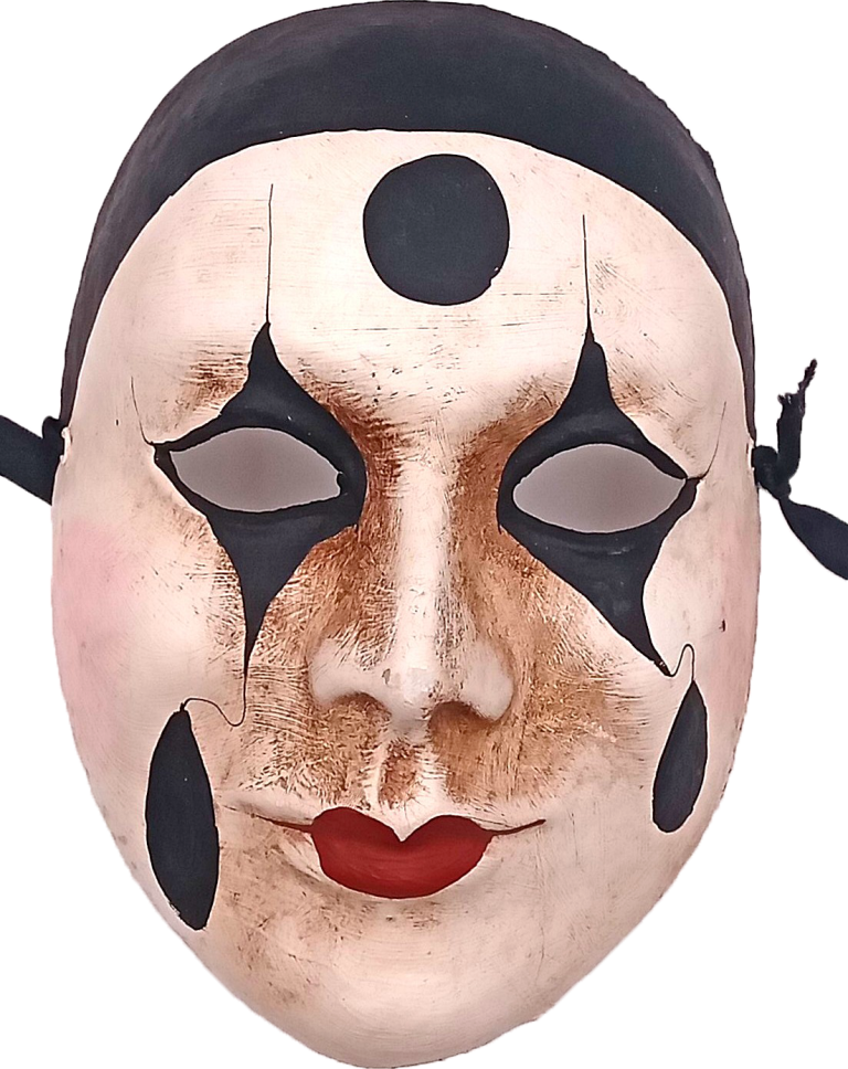 Le masque blanc de PIERROT qui laisse couler une larme noire était à l’origine un zanni de la Commedia dell’arte. Il s’appelait PEDROLINO, était honnête, gentil, mais un peu simplet et souvent la victime des farces des autres zannis.
