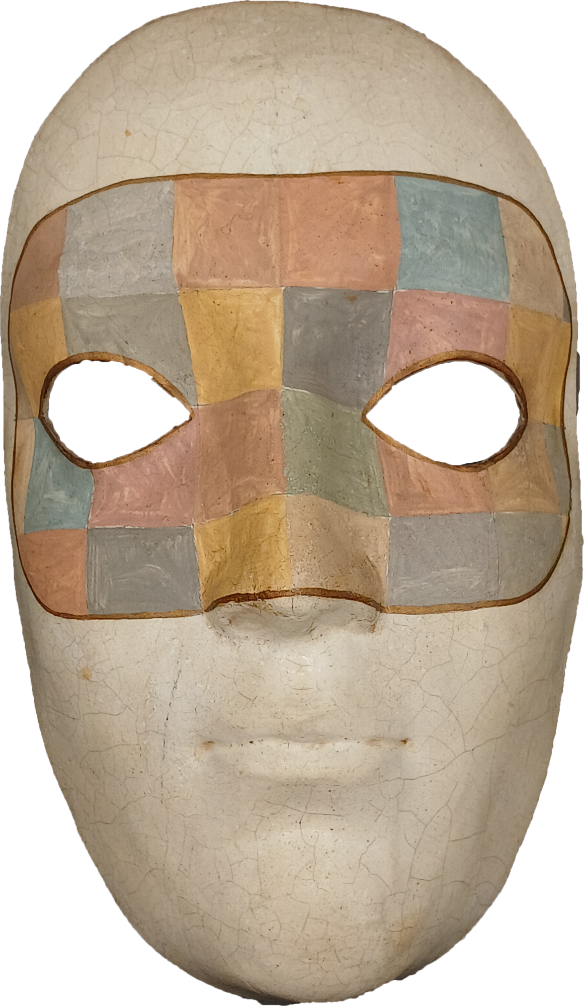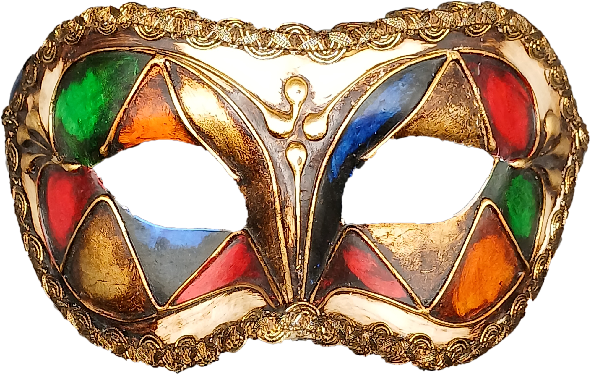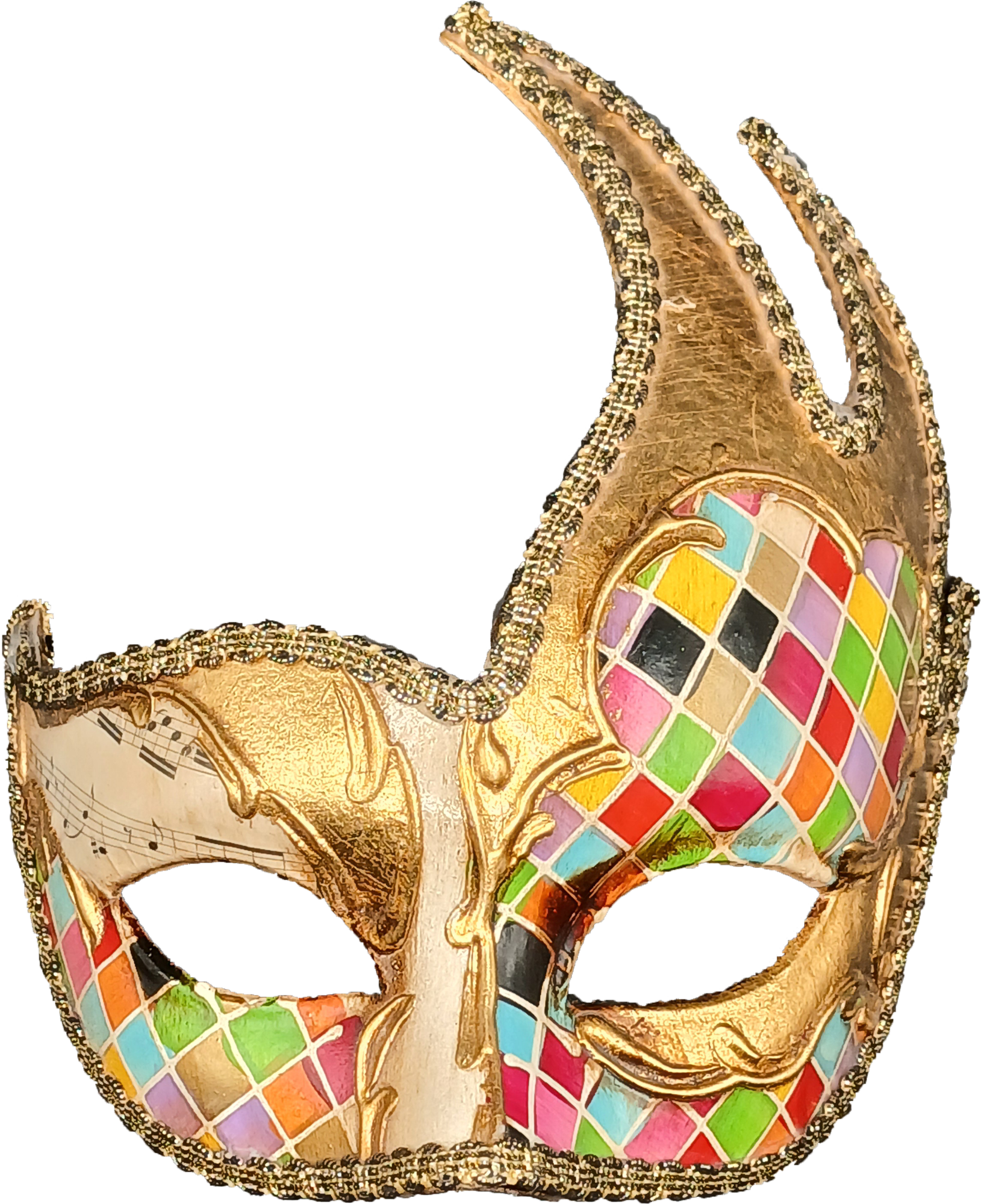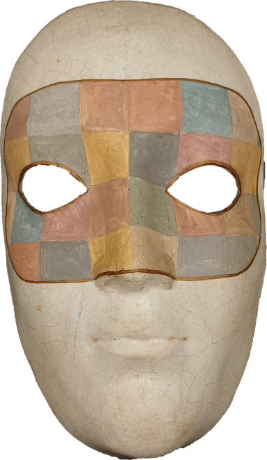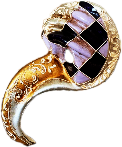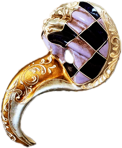 Le losange coloré est devenu un motif graphique incontournable des masques vénitiens contemporains. Ce décor rend hommage au costume rapiécé d'Arlequin. Par extension, un loup orné de ces formes géométriques est lui-même baptisé ARLEQUIN