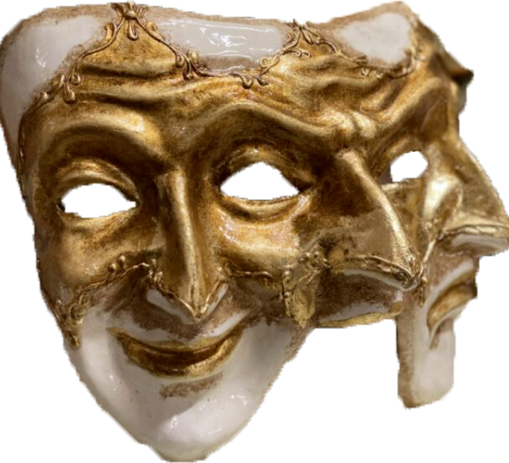 TRE FACCE propose aussi une référence à la Grèce antique ; la tragédie qui pleure et la comédie qui rit.