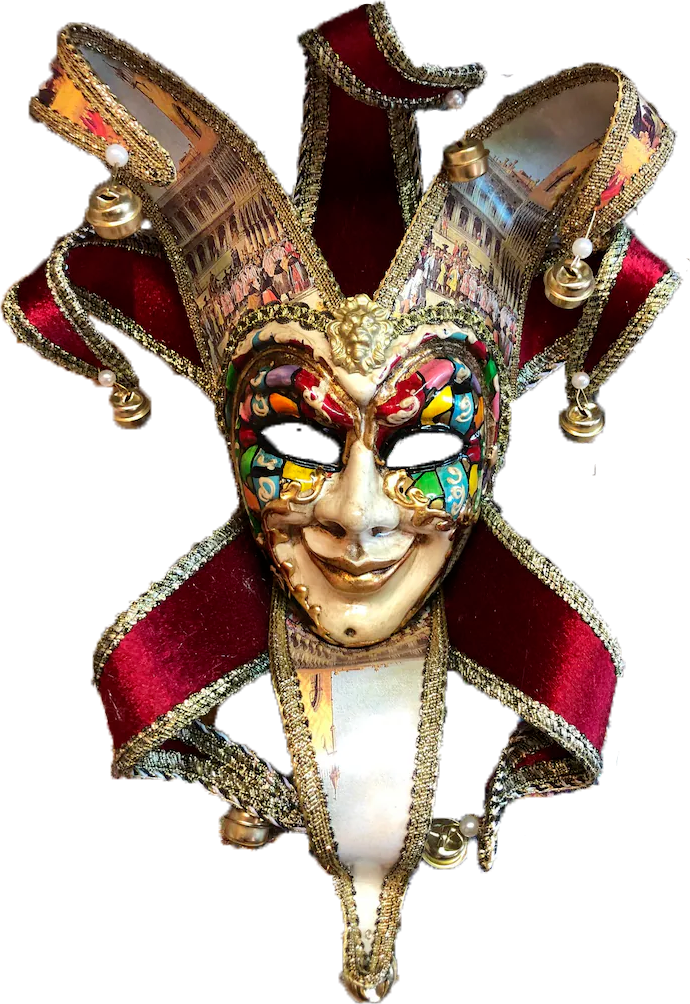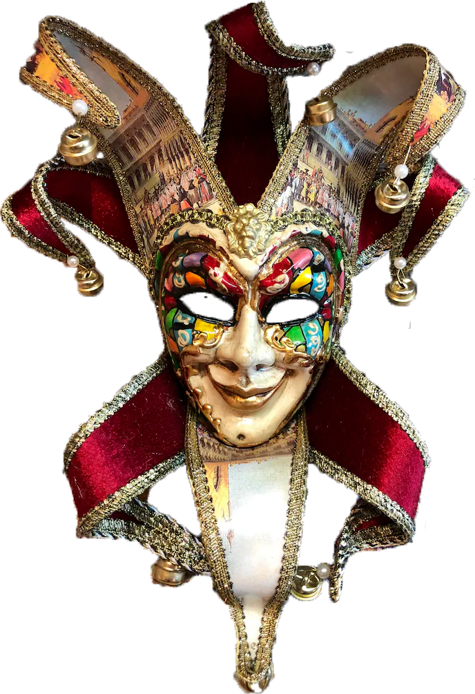 On dit que les origines du Jester remontent aux sociétés tribales préhistorique d’Europe mais le masque dâte de la réintroduction en 1980.